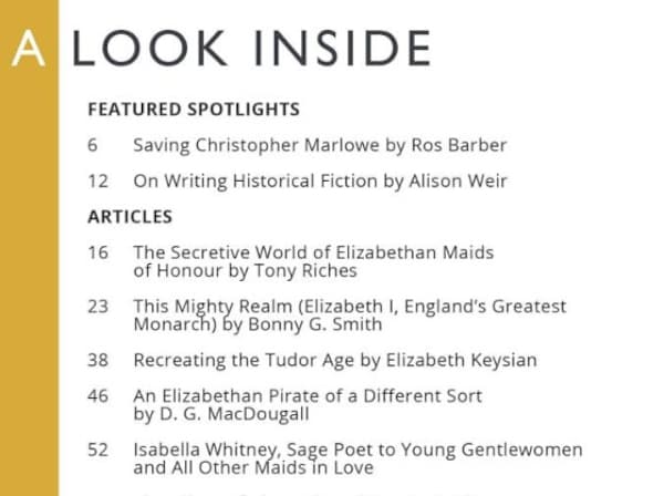 I wrote an article about Isabella Whitney which appeared in this beautifully illustrated magazine on all things Elizabethan. Available at Amazon: Historical Times Magazine: Elizabethan / Tudor Issue #23 - June 2023: Marley, Dk, Press, Historium, Barber, Ros: 9798988381730: Amazon.com: Books